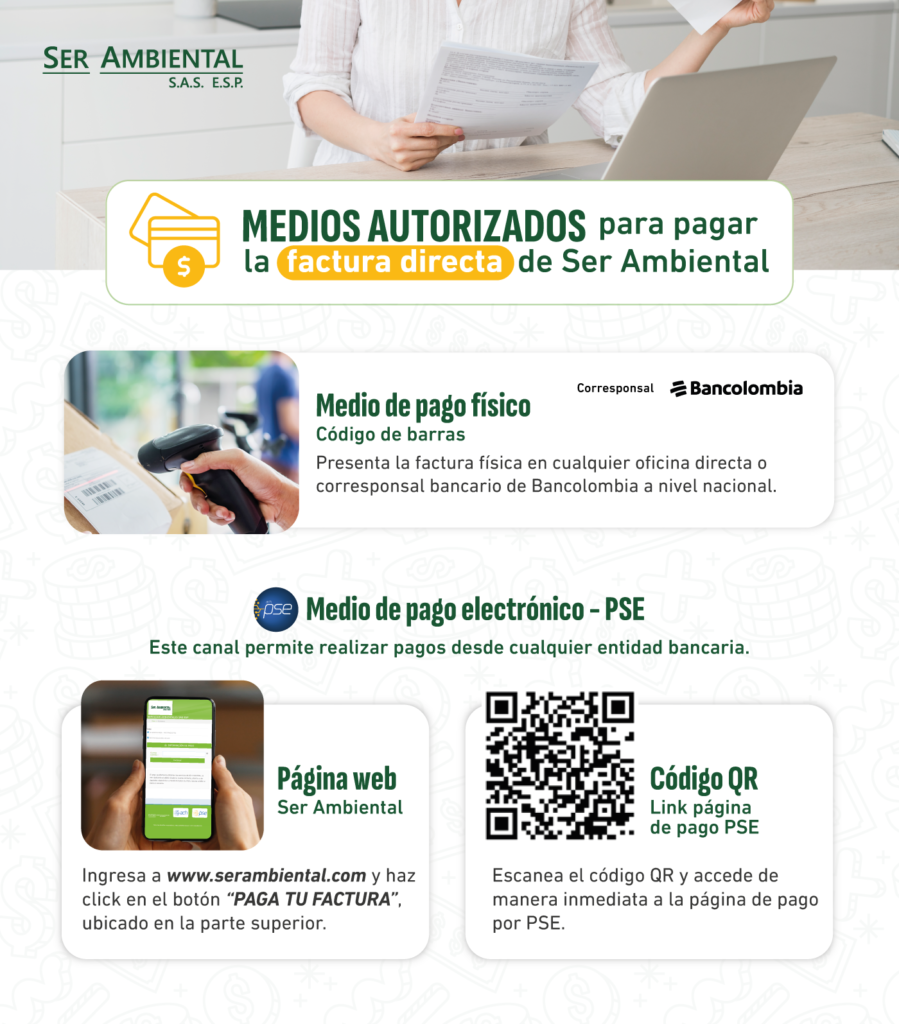 A continuación, te presentamos los medios autorizados para realizar el pago de la factura directa, con el fin de garantizar un proceso seguro, oportuno y confiable para nuestros usuarios.